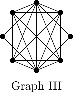 If \(G\) is a planar graph with \(n \ge 3\) vertices, we know that \(G\) has at most \(3n-6\) edges. Using this condition and no other properties of planar graphs, what can we say about graphs I, II, and III?