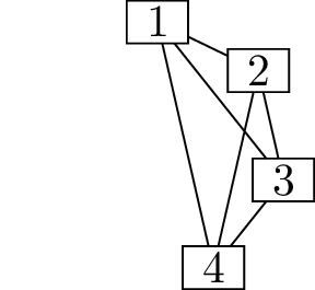 Unfortunately, if the dwarfs play two games as in Figure 1.3, they can’t finish by playing two more. A single card game can only take care of \(4\) of the \(12\) remaining edges in Figure 1.3(c), so at leas three more card games are needed. (See if you can find \(3\) card games that will do it!) We can’t avoid arriving at the graph in Figure 1.3(c) entirely, either! It occurs whenever there are two card games that only have one dwarf in common. But if this never happens, then every dwarf needs at least three games to face all \(6\) other dwarfs, and this leads to an even longer solution. Ultimately, at least five card games are necessary, however we schedule them.
