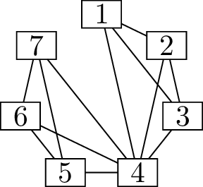 Altogether, there are \(\binom 72 = \frac{7\cdot 6}{2} = 21\) pairs3 of dwarfs: we choose two dwarfs in \(7\cdot 6\) ways, and divide by \(2\) because order doesn’t matter. In each card game, \(\binom 42 = 6\) dwarfs face each other, so at least \(21/6\) games are necessary, which rounds up to \(4\).