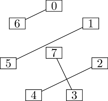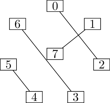 Proof. Imagine that we put \(n\) different people on the \(n\) vertices of the complete graph. Then, we call out the edges of the graph one by one, in increasing order of weight. Whenever we call out an edge \(xy\), the two people standing on vertices \(x\) and \(y\) trade places, walking along edge \(xy\) in opposite directions.
