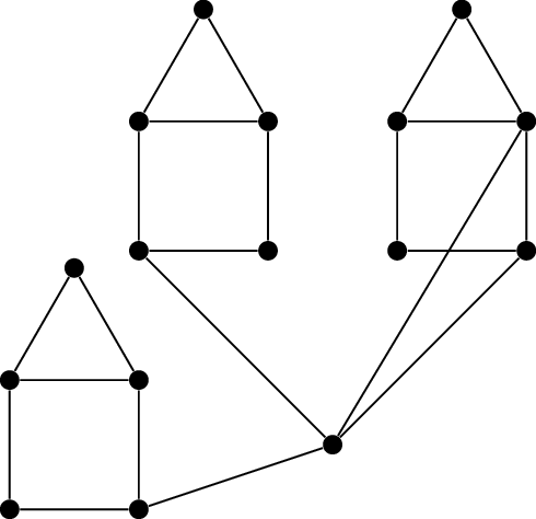 We could add edges to each house to make it a copy of \(K_5\), and then add edges from the extra vertex to every vertex of each house.