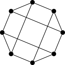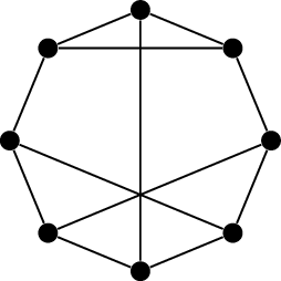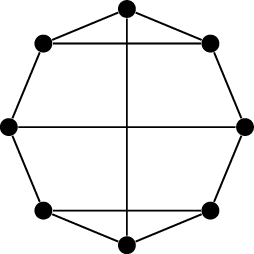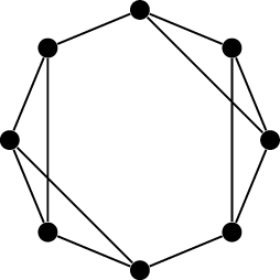 However, in an example like this one, where \(C\) is a Hamilton cycle, deciding which fragments are inside and which fragments are outside \(C\) is all that there is to finding a plane embedding. A bipartition of the overlap graph tells us exactly how to draw \(G\).